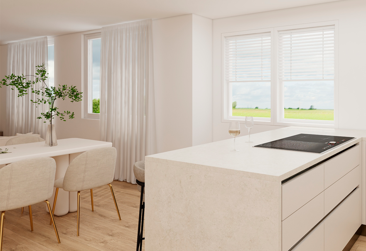 La reforma de la cuina té com a objectiu la creació d’un espai obert que connecti visualment amb la resta de l’habitatge, afavorint la continuïtat espacial i la relació entre els dos àmbits. La proposta prioritza una distribució funcional i eficient, optimitzant l’ús de l’espai i potenciant l’entrada de llum natural per aconseguir un ambient lluminós, confortable i adequat per a l’ús quotidià.